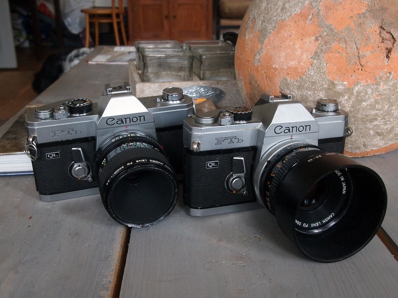 Het is waar, je ziet ze niet zo veel en eerlijk is eerlijk, het zijn geen Nikons on Canons, maar ze doen het wel. Helaas is 1 van de Praktca’s niet helemaal 100% gaaf, maar werkt wel gewoon. Hij mist een ring rond de ontspanknop. Maar eens uitdenken hoe dat op te lossen is. Zou een mooie 3D tekenopdracht met print kunnen zijn voor mijn leerlingen…… Misschien een ideetje.